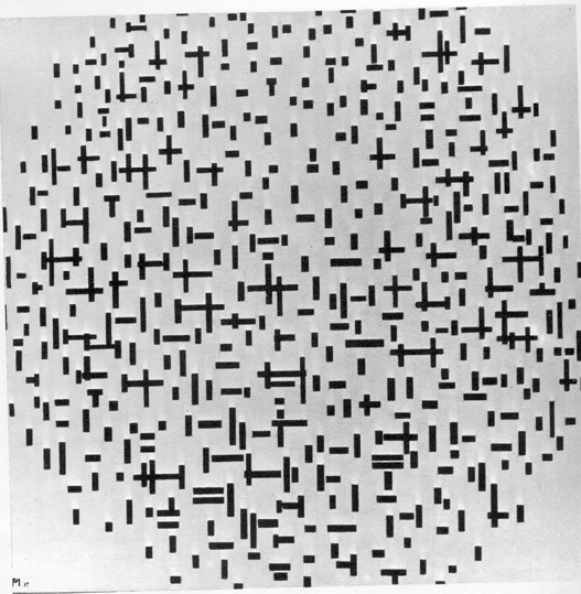 Left: Michael A Noll, Computer composition with Lines, 1964, digital computer and microfilm plotter